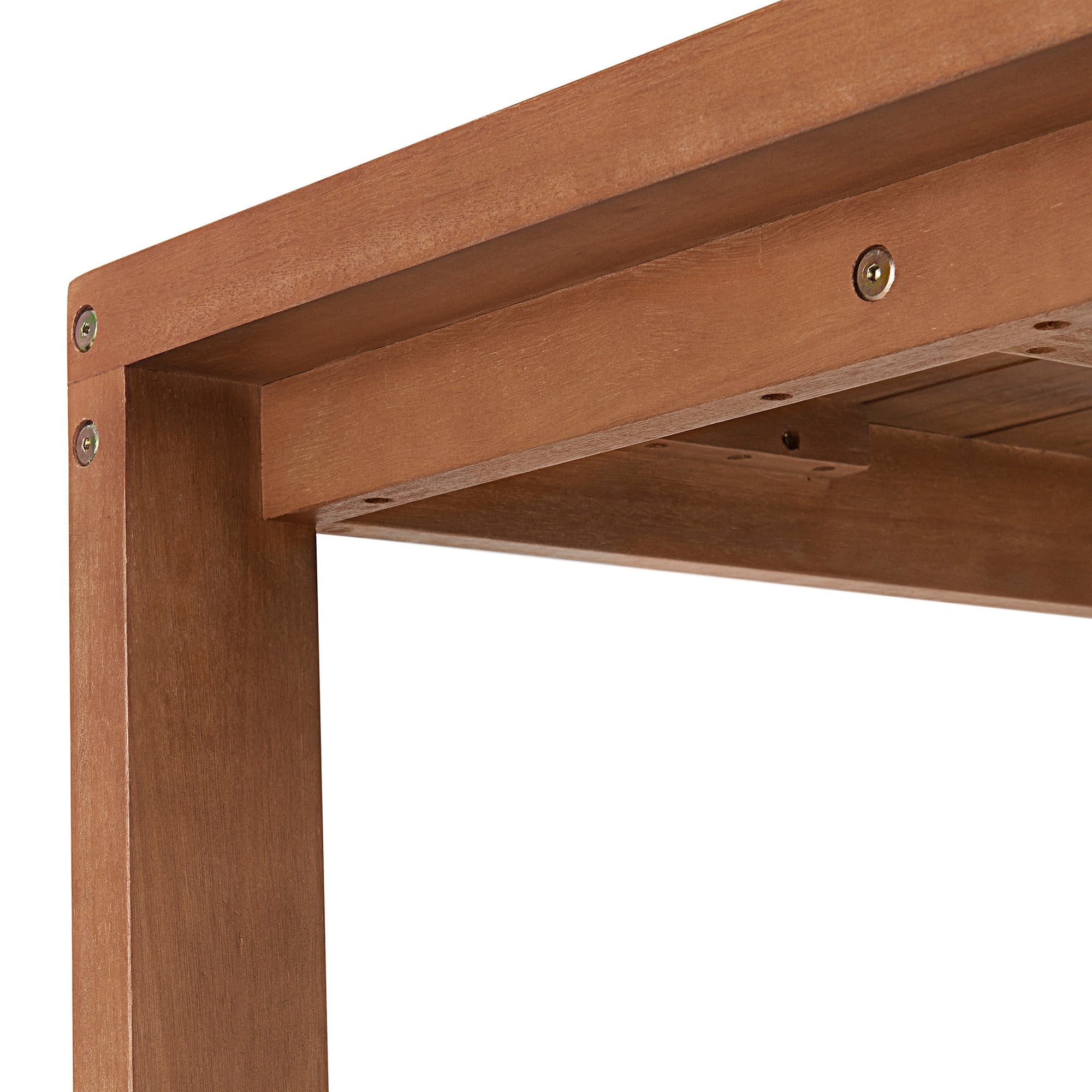Gather with friends and family to enjoy conversations or meals outside with this stylish wood outdoor dining table.  Its clean lines and simplicity add refinement to any patio setting. Frame is made from durable eucalyptus wood that will stand up to varying weather conditions. The neutral wood finish will easily match with any accent pieces in your outdoor space, or pair this beautiful dining table with other items in the collection for the perfect outdoor entertainment space!