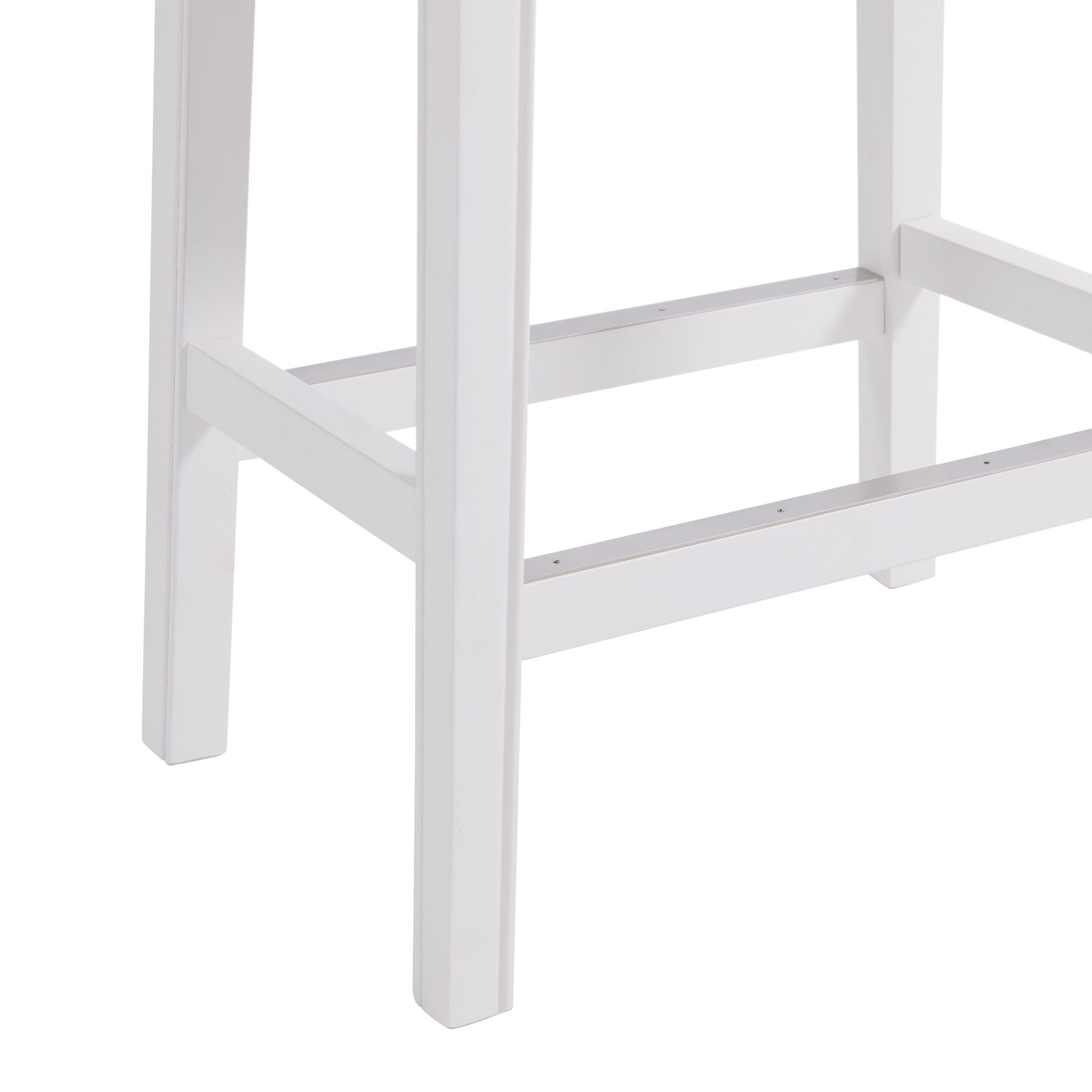 Add a touch of style to your home with this classic stool. The legs are made from rubberwood for extra durability. The backless saddle seat is lined with nail head trim, while cushioned padding provides extra support when you need it most. Stretcher bars between the legs provide stability and comfort, and a metal kick plate protects the footrest from wear. This piece of furniture will put the finishing touch on your bar, kitchen island or tall bistro table.