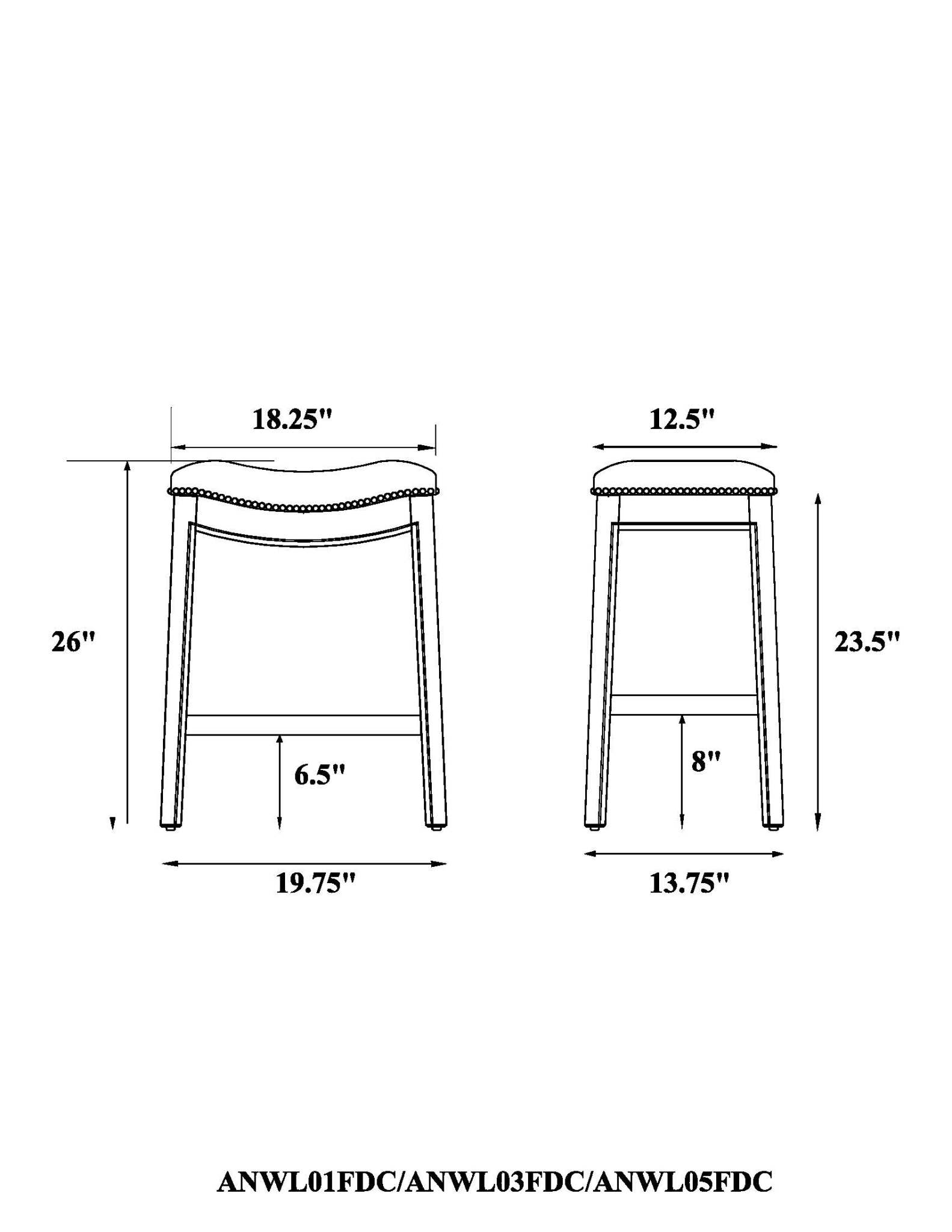 • Counter height seat dimensions: 18 1/4"W x 12 1/2"D x 26"H; bar height seat dimensions: 18 1/4"W x 12 1/2"D x 26"H