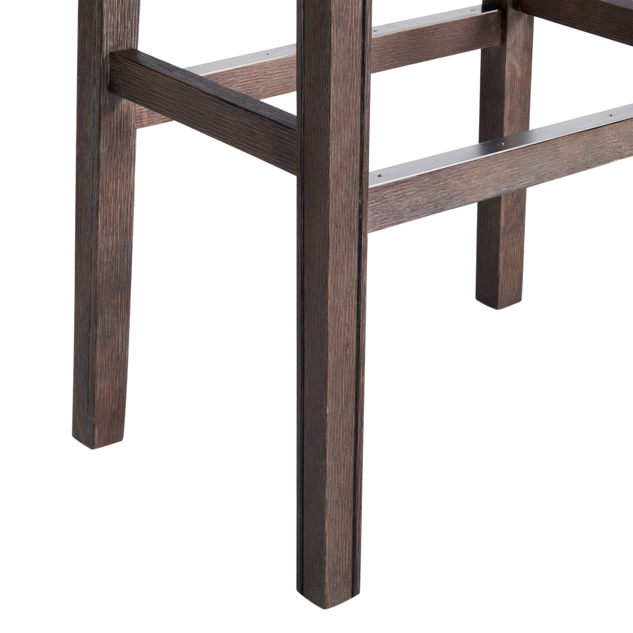 - [STURDY CONSTRUCTION] Crafted with a solid rubberwood frame, this bar height stool features a dark brown wire brush finish with gray accents, ensuring both durability and a stylish appearance; ideal for any bar or kitchen island setup