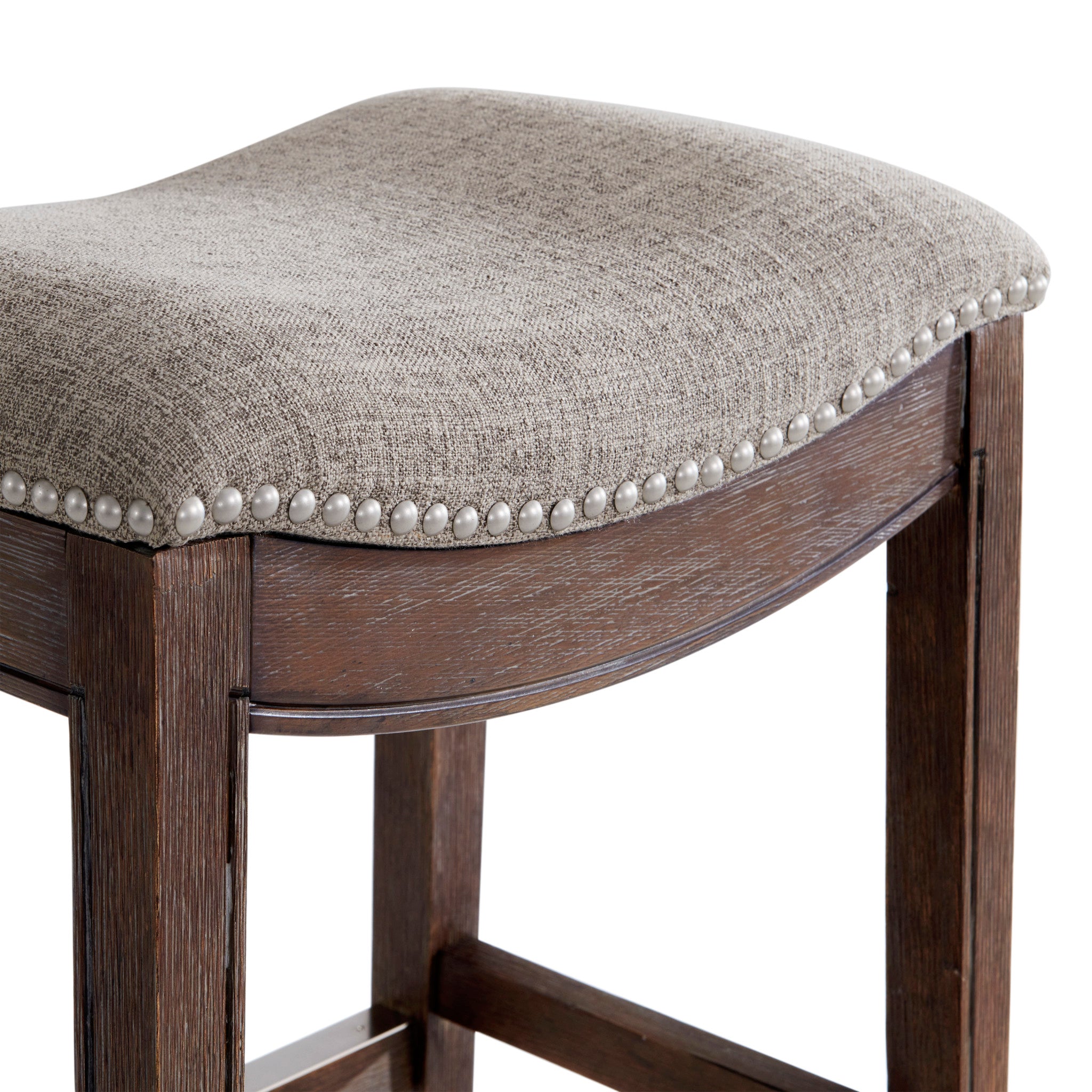 - [COMFORTABLE SEATING] Enjoy extended comfort with the fully upholstered, linen-like fabric seat of the Williston Bar Height Stool, complemented by elegant silver satin nail head accents; perfect for long conversations at your home bar or kitchen island