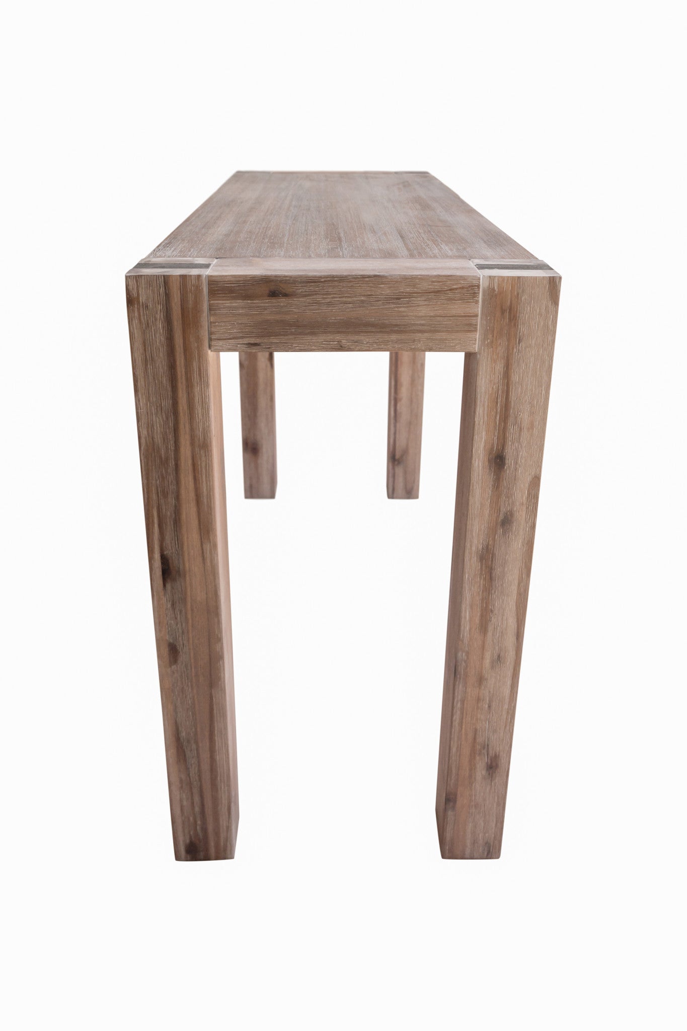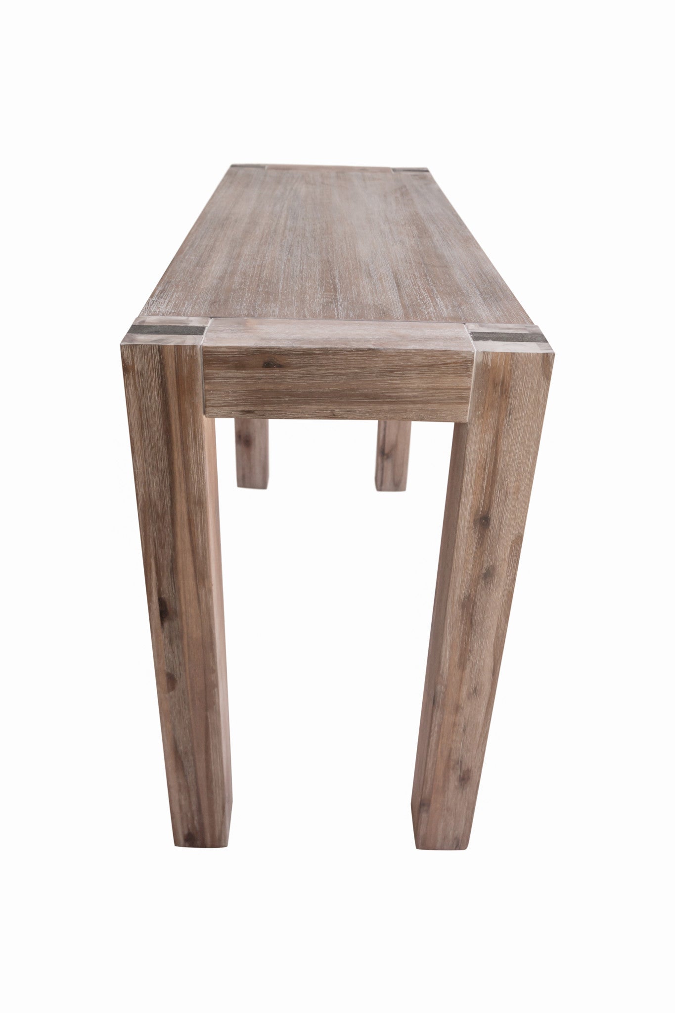 - PRODUCT DETAILS – Materials: Solid Acacia Wood and Metal. Overall Dimensions: (L) 40” x (W) 16” x (H) 29”; Weight Capacity: 150lbs. Color: Driftwood Finish.