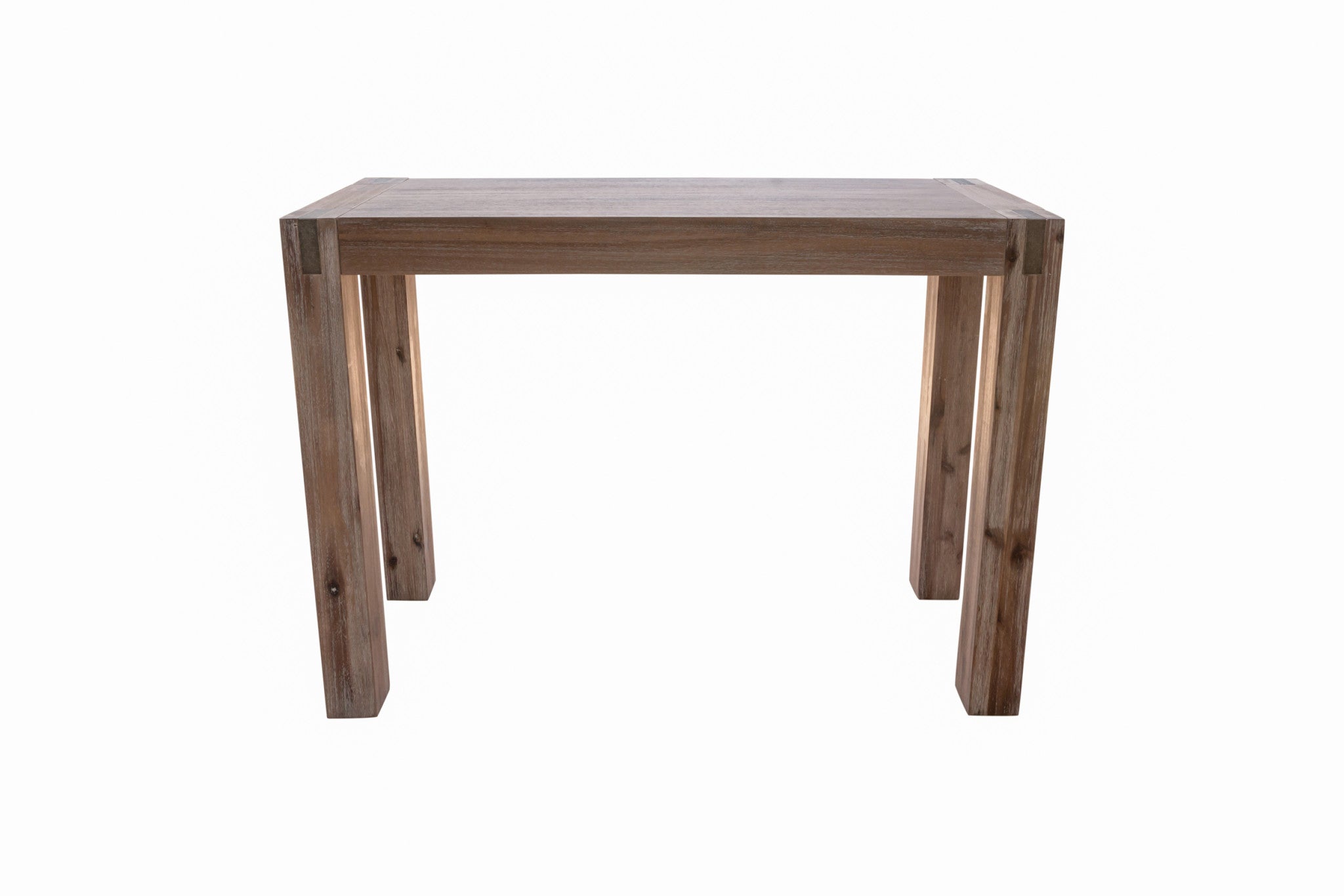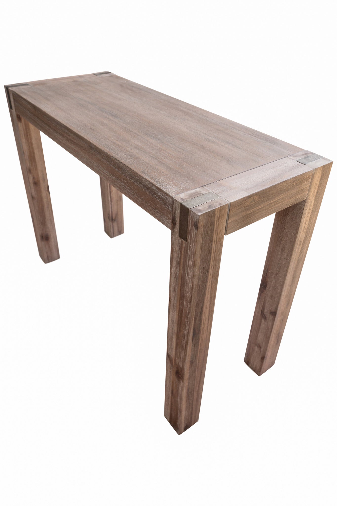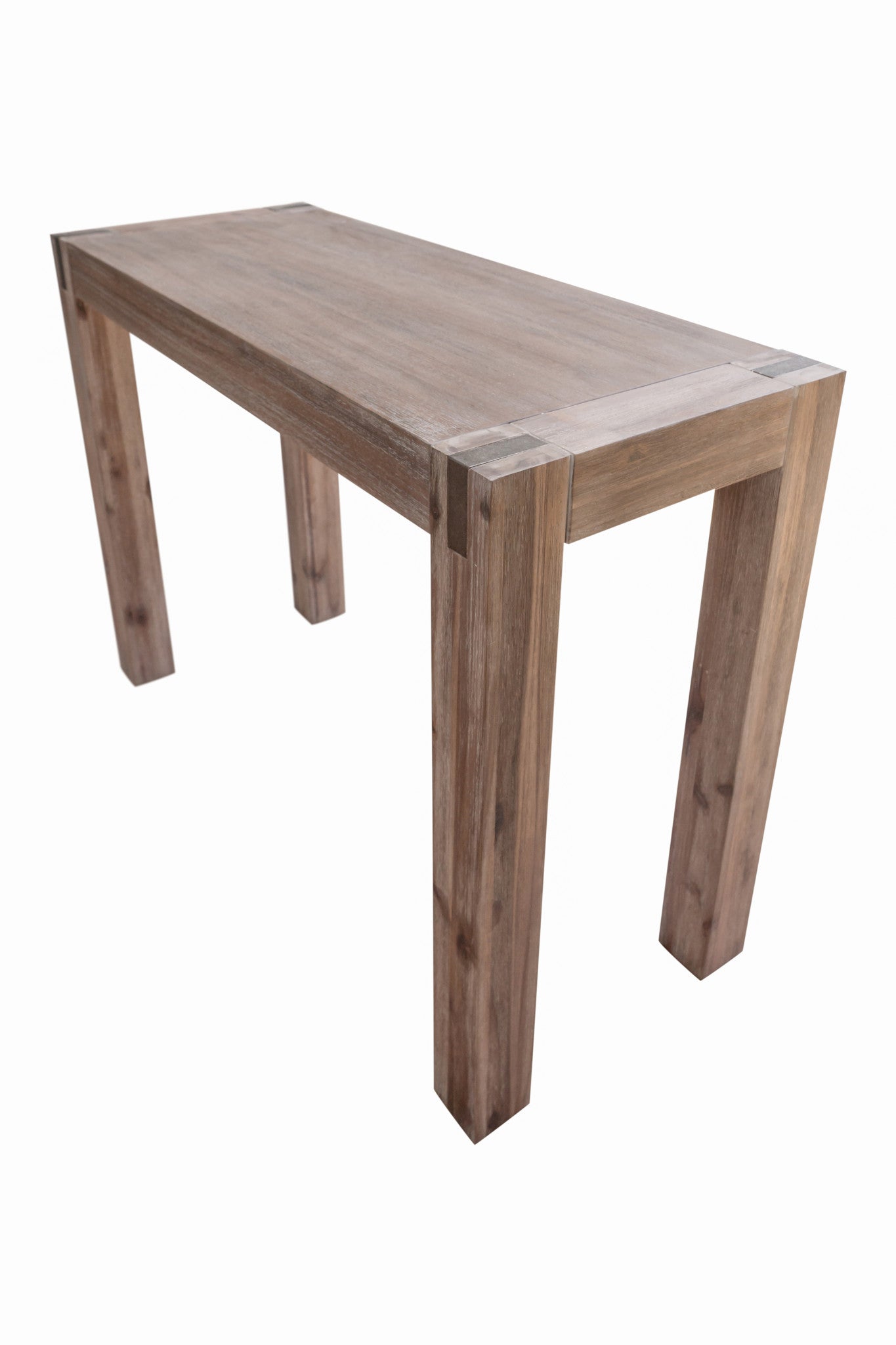 - MODERN FARMHOUSE CONSOLE TABLE – Elevate your entryway, hallway, or living room with this stylish console table, featuring a brushed driftwood finish, solid acacia wood legs, and bronze-finish metal corner insets. Ideal for apartments, lofts, or small spaces.