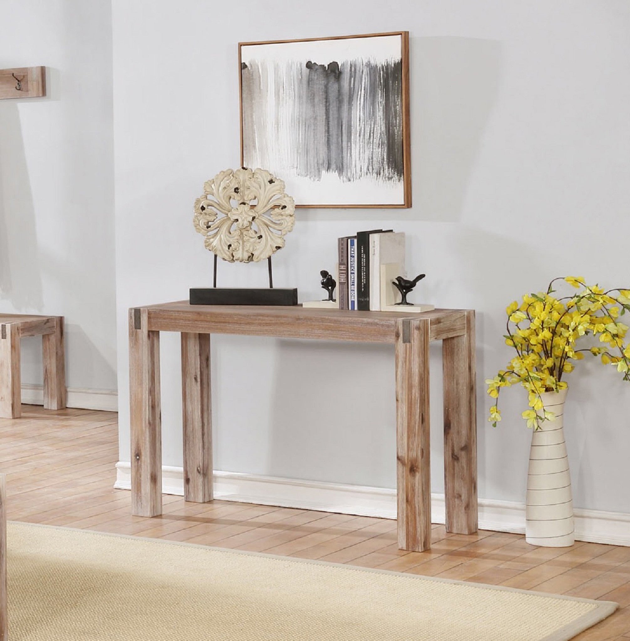 Woodstock Acacia Wood with Metal Inset Media Console Table, Brushed Driftwood