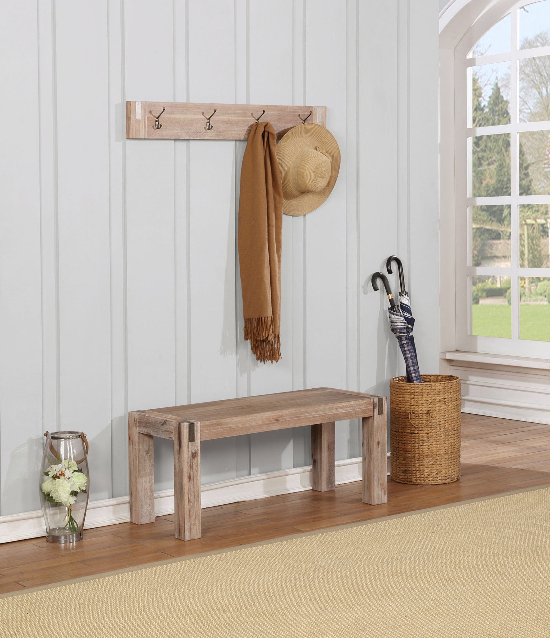 Woodstock Acacia Wood with Metal Coat Hook and Bench Set, Brushed Driftwood
